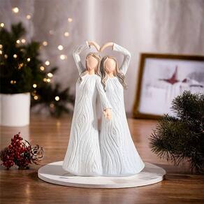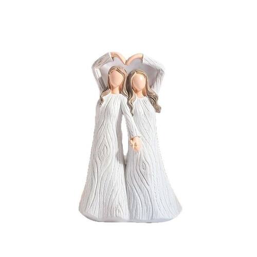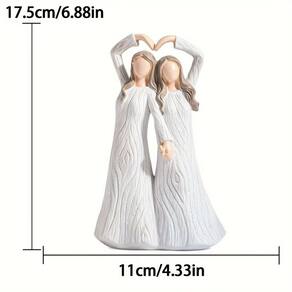 Material do produto: resina sintética Peso do produto: 320 g Tamanho: 15* 10* 20 cm Design de anjo em forma de coração — apresenta dois anjos sem rosto juntos com os braços levantados formando um coração, simbolizando amor e união. Estilo moderno elegante — Design minimalista com vestes brancas texturizadas e cabelos soltos, combinando bem com várias decorações domésticas. Material de resina durável — Feito de resina de alta qualidade com detalhes finos, leve e resistente para uso duradouro. Tamanho prático da tela — mede 20 cm de altura x 15 cm de comprimento x 10 cm de largura, adequado para prateleiras, mesas, entradas ou mesas de cabeceira. Ornamento decorativo versátil — escultura perfeita para o Dia das Mães, celebrações familiares ou como uma peça simbólica de afeto na decoração da casa.