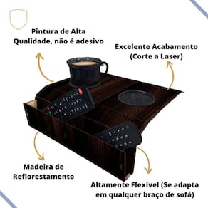 Esteira bandeja sofá porta copo + esteira controle + bolacha
