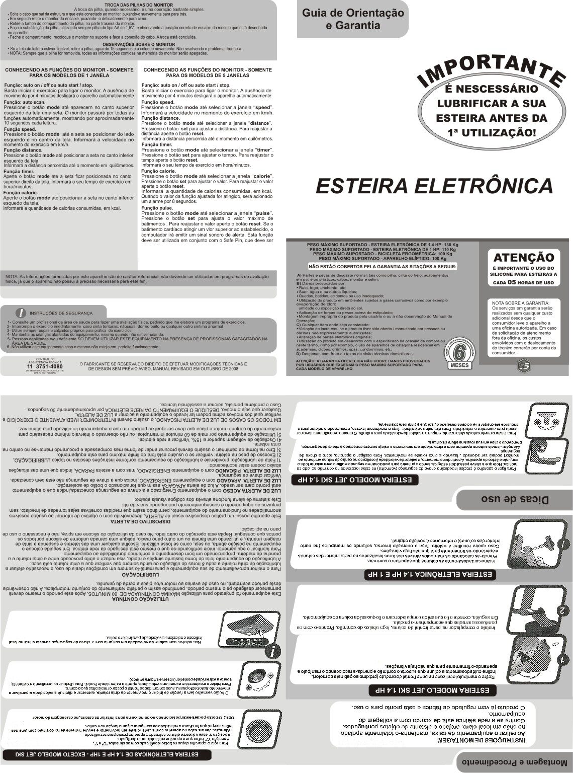 Além disso, possui porta objetos ideal para deixar o celular, chaves e objetos pessoais durante o exercício, sistema de amortecimento no deck em MDF e é Bivolt. Possui apenas um botão que ao ser friccionado, as funções ( Velocidade, Distância, Tempo, Calorias gastas) vão mudando.