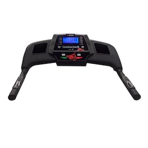 Display em LED (velocidade, distância, cronômetro, monitoramento cardíaco e calorias), possui velocidade 01-12 km/h, motor 2.3 HP DC (Peak Power), 3 programas predefinidos de treinamento, 3 de nível de inclinação manual, 2 porta objetos. Na cor preta, projetada para usuários com até 100 kg e altura máxima 1,80 m.