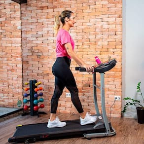 A esteira compacta da Speedo é perfeita para caminhadas em casa: além de não ocupar muito espaço e ser de fácil movimentação, a TR2 é silenciosa o bastante para não incomodar nem os seus vizinhos de apartamento.