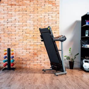 Esse modelo foi pensado para otimizar o espaço ocupado na sua residência. Ela é compacta e dobrável, além de possuir rodinhas para o transporte. Ideal para quem busca uma esteira para caminhar em casa, com praticidade!