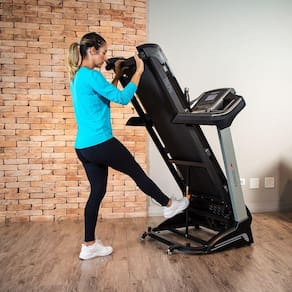 A TR6 é uma esteira forte e super versátil. Por contar com uma estrutura robusta e motor forte, ela suporta um fluxo profissional de utilização. E por ser compacta e dobrável, ela também pode ser utilizada para treinos de corrida em casa. Uma esteira que acompanha sua evolução e te desafia a ir além, seja onde quer for seu treino.