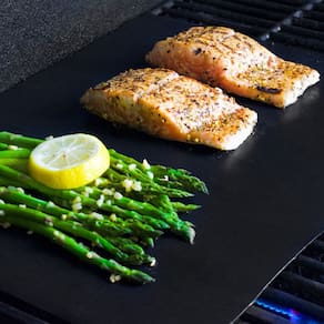 Manta Antiaderente para Churrasco ! Esteira Grills tem um exclusivo sistema antiaderente que não transmite sabor ou odor aos alimentos. Produzida em Teflon tem altíssima durabilidade e excelente custo benefício. Com sua Esteira Grills você poderá preparar cortes bovino, suíno, frango, , peixes, além de legumes, vegetais, queijo, pão de alho, preparar lanches completos com bacon e ovos apenas usando sua churrasqueira. Especificações: Produzida em Teflon de alta durabilidade e resistência Medidas: 40 cm x 33 cm Suporta até 360 graus Lavável e reutilizável Marca: Esteira Grills Ean: 7897075153518