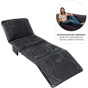 10 motores; Aquecimento lombar; Dobrável; Controle remoto; 5 modos de massagem; 3 níveis de intensidade; Bivot Automático;Garantia: 3 meses contra defeitos de fabricação