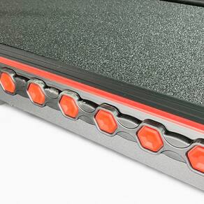 Ela ainda possui painel em LCD blue light com informações de tempo, velocidade, distância, calorias e batimento cardíaco, que você consegue medir através do hand-grip, posicionado nos braços da Esteira.