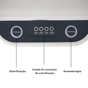 - Lâmpadas UV nas laterais, garantindo uma esterilização de 360 graus - Leve e portátil - Versátil, podendo ser usada para diversos objetos - Entrada extra para cabo USB - Difusor interno para uso de óleo essencial