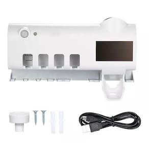 Esterilizador Uv Para Escova Dentes Dispenser Pasta EscovaPossui 4 slots para escova de dentes na frente e um dispenser manual de pasta de dentes.Fácil de fixar na parede do banheiro, através de fita dupla face. O esterilizador uv funciona através de energia solar, sem necessidade de plugues e sem baterias para substituir, o que é seguro e econômico.Este esterilizador adota possui uma luz uv de 1.2w / 253.7nm. Características:Esterilização 360º: o esterilizador uv para escova de dentes oferece a você e seus entes queridos uma escova de dentes limpa e sem bactérias todos os dias.Sensor de proximidade: quando você estiver perto do suporte, irá ativar o processo automaticamente. Deixe o início da esterilização. Rack multi-armazenamento: o porta-escova de dentes pode receber até 8 itens, para se adequar a todos os tipos de famílias.A primeira fila do suporte de escova de dentes pode conter 4 escovas de dentes e a segunda fila pode conter 1 fio dental, 1 lâmina de barbear e 1 raspador de língua. O design do suporte também é muito humanizado, você pode colocar todos os tipos de pasta de dente, porque forneceremos um adaptador multifuncional.Economia de energia: os painéis solares avançados de película fina de silício amorfo fornecem qualquer tipo de iluminação para estações espaciais, incluindo iluminação natural e iluminação interna.Isso elimina a necessidade de luz direta, aumentando as taxas de conversão de luz e prolongando o tempo de operação do porta-escovas.Especificações:Material: plástico absMedidas: 20 x 10 x 6cmConteúdo da embalagem:01 suporte com esterilizador uv01 adaptador para tubo de pasta de dentes01 kit de fixação01 cabo usb
