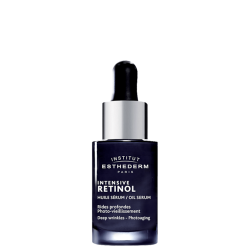 Óleo sérum anti-idade para todos os tipos de pele. Esthederm Intensive Retinol Oil neutraliza as rugas profundas e melhora a firmeza para uma aparência rejuvenescida e renovada.