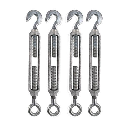 Esticador Para Cabos De Aço De Espessura Ate 3/4 pol. 19,0 MM , Corpo Em Ferro Maleável Galvanizado Com Terminais Gancho E Olhal Em Ferro Galvanizado. Indicado para tensionar esticar cabos de aço e cordoalhas. Não deve ser utilizado em aplicações de movimentação de cargas. Marca: Starfer Ref.: 05057051
