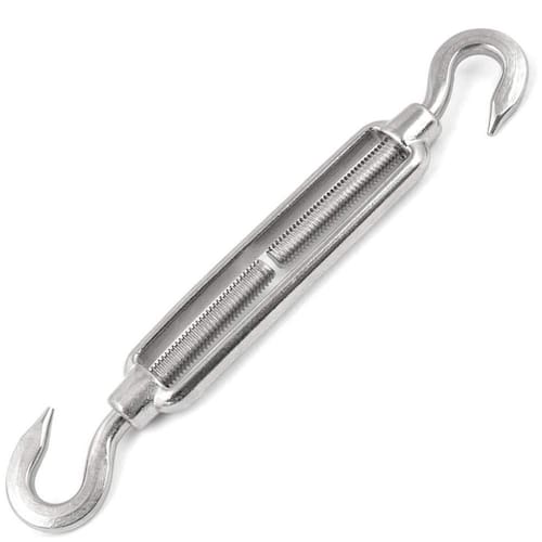 Acessório multiuso, utilizado para fixação de cabos, cordas entre outros. Construído em aço 316 de alta resistência para utilização em ambientes marinhos. Uso; ao movimentar o centro do esticador, o mesmo aproxima ou distância as estremidades, aumentando assim a tensão do cabo, e ajustando as extremidades.