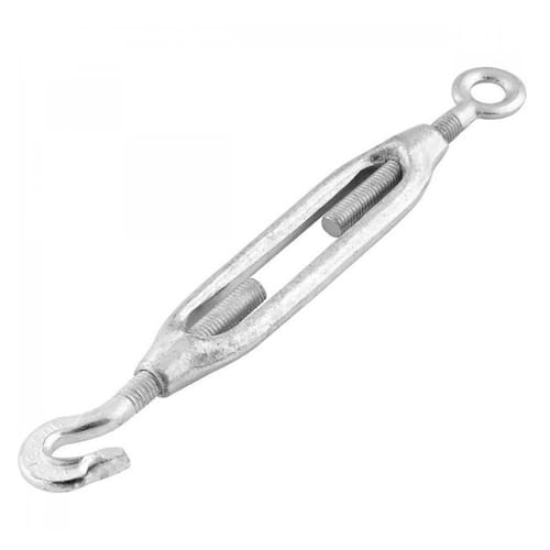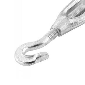 características da ferramenta utilizado para tensionar/esticar cabos de aço e cordoalhas, uso leve, não deve ser utilizado em aplicações de movimentação de cargas como tração, elevação ou estaiamento. A medida do esticador deve ser compatível com a medida do cabo de aço. Possui tratamento galvanizado, proporcionando resistência à oxidação/corrosão. Imagem meramente ilustrativa