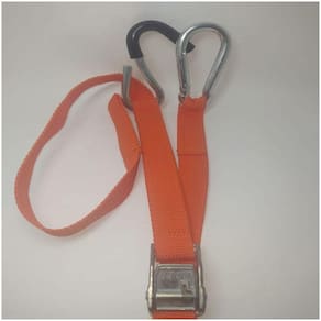 Cinta Cross com presilha de 25mm de largura e com 2,30 metros de comprimento e gancho tipo S nas extremidades para amarração de cargas em geral.