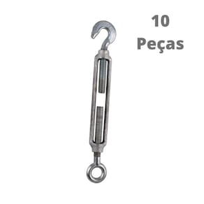 Esticador Para Cabos De Aço De Espessura Ate 3/4 pol. (19,0 MM), Corpo Em Ferro Maleável Galvanizado Com Terminais Gancho E Olhal Em Ferro Galvanizado.Indicado para tensionar (esticar) cabos de aço e cordoalhas. Não deve ser utilizado em aplicações de movimentação de cargas.Marca: StarferRef.: 05057051