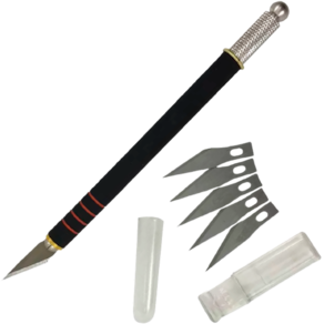 Lâminas afiadas e precisas Contém: 1 estilete 1 Capinha para a ponta 5 laminas de refil. Comprimento: 150 mm
