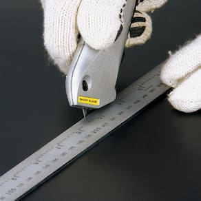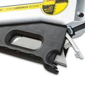 Este estilete mantém a lâmina seguramente retraída, quando não está em uso, se bem que torna à posição de uso instantâneamente, simplesmente soltando a trava de segurança e pressionando a alavanca contra o corpo do estilete. A profundidade de corte é fácil e precisamente ajustada através de uma porca controlada pelo polegar; O cabo possibilita uma troca rápida de lâminas e seu armazenamento de maneira rápida, segura e sem necessidade de qualquer ferramenta - você não tem que largar o estilete para trocar a lâmina; Precisão de corte e alta resistência; Armazenamento de lâminas no próprio estilete; Seguro, fácil de usar e rápida substituição da lâmina; Mecanismo de segurança automático.