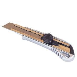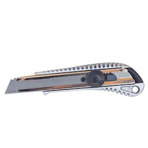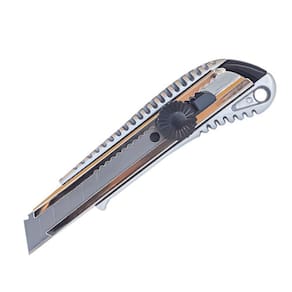 Possui corpo em liga de alumínio: mais resistência - Guia metálica: precisão e segurança - Botão parafuso giratório que permite travar e lâmina facilitando seu manuseio - Design especial para melhor agarre - Acompanha: 1 lâmina. - Tamanho da lâmina: 18 mm