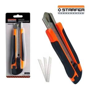 O Estilete Starfer é indicado para fazer cortes em geral. Possui compartimento interno para armazenar as lâminas sobressalentes. Corpo em plástico polipropileno revestido com borracha termoplástica (TPR), 165mm de comprimento. Indicado para fazer cortes em geral.
