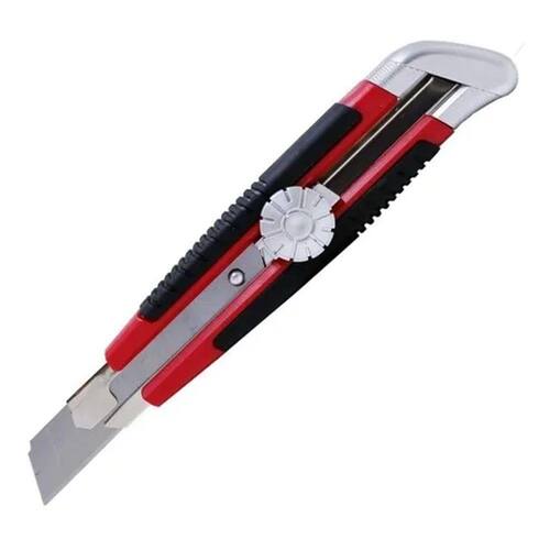 Corpo de plastico com revestomento de borracha com guia de metal. Fixacao da lamina automatica e de parafuso. Substituicao da lamina e feita a mao pela parte traseira do estilete. Projetado para cortar papel, papelao e outros materiais 01 ESTILETE - MARCA: MTX - MATERIAL: CORPO EM PLÁSTICO REVESTICO DE BORRACHA TERMOPLÁSTICA - TEM BOTÃO PARA TRAVAMENTO DA LÂMINA - INDICADO PARA USO AMADOR E PROFISSIONAL - ACOMPANHA: 01 LÂMINA