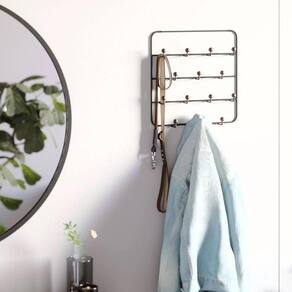 Design diferenciado e com linhas finas, a junção leve do branco + madeira, e claro, além de tudo isso é uma peça super útil pro dia a dia de uma casa: são 14 ganchos generosamente espaçados entre eles, dando espaço para acessórios de todos os tamanhos e formas, como blusas de frio, bolsas e lenços!
