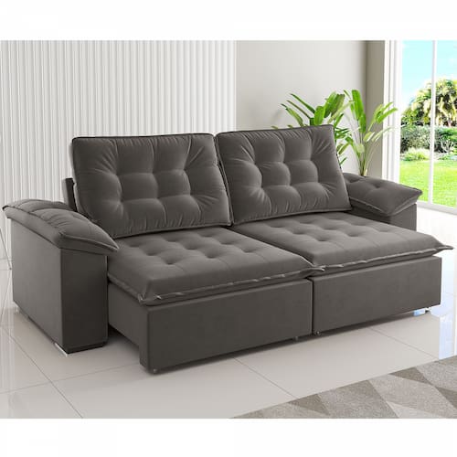- Pode Ser Montado Invertido?: Não - Necessita de Montagem: Sim - Possui Borda de PVC nas Bordas?: Não - Sofá-Cama: Não - Categoria: Sofá - Possui Gavetas?: Não - Possui Portas?: Não - Possui Espelho?: Não - Possui Prateleiras?: Não - Possui Puxadores?: Não - Possui Tampo?: Não - Possui Rodízios?: Sim - Possui Sapatas?: Não - Possui Pés?: Sim - Pés com regulagem de altura?: Não - Material da Estrutura: Eucalipto - Espessura da Estrutura: 21 mm - Escala de Brilho: Semi-Brilho - Quantidade de Lugares: 4 - Peso Suportado: 260 kg - Escala de Conforto: Firme - Medidas do Sofá Aberto (A x L x P): A:110 x L:251 x P:156cm - Como os Móveis Chegarão em Minha Casa?: Desmontado em caixas, acompanhado de todas as peças, ferragens e manuais para montagem. - Grau de Dificuldade de Montagem: Médio - Sistema de Montagem: Parafusos, cavilhas, cola e minifix. - Indicação de Uso: Sala de Estar - Observação: Objetos decorativos que aparecem nas imagens, não acompanham o produto. A capacidade de carga considera que o peso está distribuído igualmente pela peça. As cores das imagens podem variar de acordo com as configurações do seu monitor e/ou da iluminação do ambiente onde o produto está inserido. As imagens indicam uma sugestão - Recomendação de Manutenção: Utilizar pano levemente umedecido, seguido de pano seco. Não utilizar quaisquer produtos abrasivos. - Garantia (dias): 90 Dias - Quantidade de Pés: 8 - Revestimento/Acabamento: Veludo - Tipo do Assento: Retrátil - Tipo de Sofá?: Sofá - Tipo de Encosto: Reclinável - Enchimento do Encosto: Fibra Siliconada - Enchimento do Assento: D-23 - Composição do Tecido: Veludo