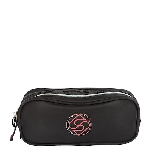Estojo 2 comp sestini trend - preto preto grande prático e estiloso, o estojo sestini trend preto possui dois compartimentos com fecho em zíper e patches emborrachados, perfeito para organizar seus materiais com segurança e estilo. Preto Grande Estojo