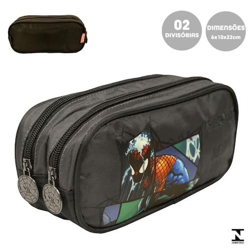 Estojo 2 divisórias homem aranha amazing 11331 xeryus medidas: 6 espessura x 10 altura x 22 comprimento cm 02 divisórias com fechamento em ziper composição: poliéster estojo com fechamento em ziper e com uma estampa super estilosa o estojo perfeito para armazenar seus lápis, canetas, borrachas e tudo o que precisar inmetro 004803/2017 a cor pode variar de acordo com cada monitor