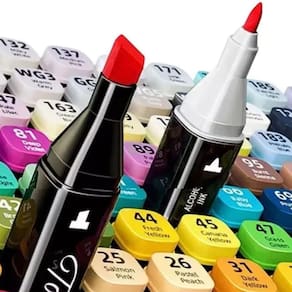 As canetas possuem uma ponta dupla, oferecendo a flexibilidade de fazer traços finos e precisos, além de uma ponta média para áreas mais amplas. Produzidas em plástico de alta resistência, são leves e fáceis de manusear, sendo ideais para uso contínuo. A tinta à base de água é segura e de fácil remoção, mantendo a qualidade das cores.