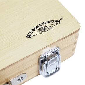 A aquarela profissional Winsor & Newton é reconhecida mundialmente entre os artistas como a melhor aquarela já produzida. A cuidadosa escolha de pigmentos puros, formulação estudada e veículo de diluição apropriado fazem com que a aquarela Winsor & Newton profissional proporcione ao artista uma experiência inigualável. Este conjunto é embalado em uma linda caixa de madeira de bambu reciclado. Uma verdadeira joia preciosa que poderia estar exposta em um museu. Composição do estojo: 1 x lápis Winsor & Newton 2B 1 x borracha Winsor & Newton 1 x esponja 2 x pincéis redondos Winsor & Newton N 0 e 4 1 x godê de porcelana 1 x toalha de limpeza 1 x bloco de papel A5 para aquarela Winsor & Newton 12 pastilhas, sendo: Winsor Yellow, Lemon Yellow, Winsor Red, Alizarin Crimson, French Ultramarine, Winsor Blue Green Shade , Permanente Sap Green, Yellow Ochre, Burnt Sienna, Burnt Umber, Ivory Black e Chinese White.