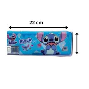 Estojo Bloco Escolar Stitch Azul Duplo com Apontador refere-se ao modelo rígido/semi-rígido de plástico ou PVC, que possui abertura tipo bloco ou estojo de metal antigo, com o apontador integrado à estrutura.Aqui está a descrição completa e detalhada:CaracterísticaDescrição DetalhadaTipo de EstojoBloco / Rígido / Dupla Face ou 2 Compartimentos Personagem/TemaStitch Disney, Lilo & Stitch Cor PrincipalAzul Geralmente em tons de azul claro ou celeste MaterialPVC ou Plástico Rígido/ResistenteCompartimentosDuplo 2 compartimentos separados, muitas vezes um em cada lado ou em dois níveis .Recurso PrincipalPossui um apontador integrado embutido na estrutura do estojo, geralmente em uma das laterais ou no meio, com compartimento para armazenar o cavaco.Mecanismo de AberturaFechamento por botão, clique ou imã. A abertura pode ser por aba articulada tipo flip ou por botões que acionam a abertura de compartimentos específicos.Capacidade EstimadaMédia/Pequena. Ideal para um conjunto básico de materiais aprox. 20 a 30 itens entre lápis, canetas, borracha e itens pequenos .Dimensões ComunsComprimento: approx 22 a 23 cmLargura: approx 8 a 9 cmProfundidade/Espessura: approx 3 a 4cmDiferenciaisDesign infantil/divertido, fácil de limpar devido ao material plástico e o apontador embutido oferece praticidade.Este modelo é popular por ser prático e por manter o material bem protegido devido à sua estrutura rígida.