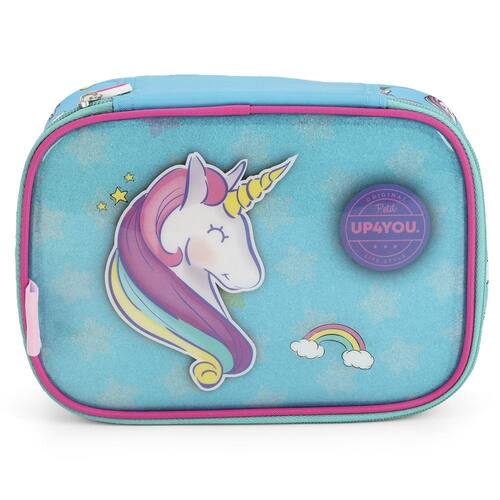 Estojo Box Up4You é super espaçoso e cabe todos os seus materiais de escrita. Ele é composto por uma divisória interna com elásticos para separar lápis, canetas e lapiseiras, e os demais materiais vão soltos no compartimento.A marca Up4You está presente em um patch emborrachado com o logo da marca no centro da face frontal, bem como nos puxadores de zíperes customizados da marca.
