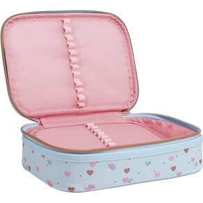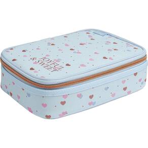 O Estojo Box Académie Coração Metalizado Azul é prático, espaçoso e ideal para quem possui muitos lápis, canetas e outros materiais e acessórios.