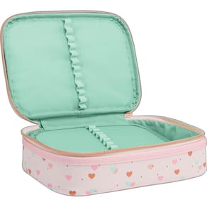 O Estojo Box Académie Coração Metalizado Rosa é prático, espaçoso e ideal para quem possui muitos lápis, canetas e outros materiais e acessórios. Além de facilitar seu dia a dia na escola, esse estojo possui material resistente, é estruturado, espaçoso e possui divisória central com elásticos que auxiliam na organização do material. Possui fechamento em zíper. Compartimento: um Detalhe: foil Divisória Central: Sim Elástico para acomodar lápis e canetas: Sim Fechamento: em zíper Formato: (L)150mm x (A)210mm x (P)60mm Forro: Sim Garantia: Garantia contra defeitos de fabricação Material: poliéster Puxador: em metal Garantia: Garantia contra defeitos de fabricação. Ean: 7891027338978