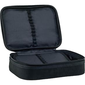O Estojo Box Académie Preto é prático, espaçoso e ideal para quem possui muitos lápis, canetas e outros materiais e acessórios. Além de facilitar seu dia a dia na escola, esse estojo possui material resistente, é estruturado, espaçoso e possui divisória central com elásticos que auxiliam na organização do material. Possui fechamento em zíper. ompartimento: um Detalhe: aplique emborrachado Divisória Central: Sim Elástico para acomodar lápis e canetas: Sim Fechamento: em zíper Formato: (L)150mm x (A)210mm x (P)60mm Forro: Sim Material: nylon Puxador: em metal Garantia: Garantia contra defeitos de fabricação.