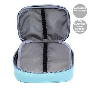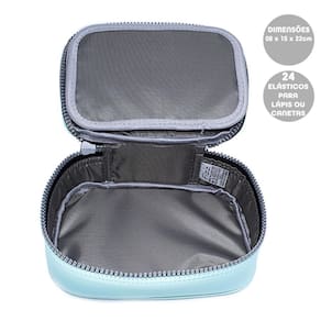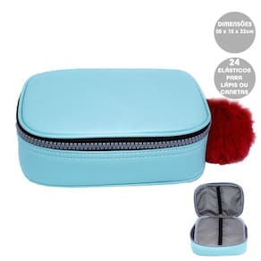 Estojo Box Baú com Elástico Jumbo Prada Azul Tifany da Fizz O Estojo Fizz Jumbo Prada é ideal para quem está procurando manter pequenos acessórios bem alocados. Esse lindo estojo é estruturado e espaçoso. Conta com um zíper resistente em toda a sua volta, garantindo uma maior durabilidade e protegendo seus materiais. Possui 24 elásticos na repartição interna Composição: Poliéster Medidas do estojo vazio : 14 espessura x 8 altura x 21 comprimento cm Fechamento em zíper