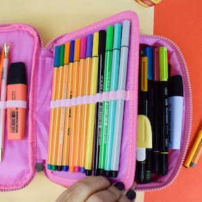 3. Qual é o tamanho do estojo R:O estojo tem as dimensões de 22 cm x 17 cm x 6 cm, um tamanho ideal para armazenar uma boa quantidade de materiais escolares de forma compacta.