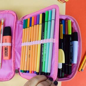 3. Qual é o tamanho do estojo R:O estojo tem as dimensões de 22 cm x 17 cm x 6 cm, um tamanho ideal para armazenar uma boa quantidade de materiais escolares de forma compacta. Marca: Não Informado