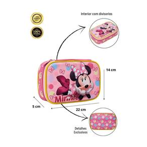 Estojo Box da Minnie Um toque de magia para a sua rotina escolar O estojo box da Minnie é mais do que apenas um lugar para guardar lápis e canetas. É um acessório cheio de estilo e funcionalidade, perfeito para as pequenas fãs da Minnie Mouse. Com design inspirado na personagem mais querida da Disney, esse estojo vai transformar a hora de estudar em um momento mágico. Principais características: Design exclusivo: Estampa da Minnie com detalhes encantadores. Elásticos internos: Mantêm lápis, canetas e outros materiais organizados e seguros. Fechamento por zíper: Garante que nada se perca durante o transporte. Material resistente: Durabilidade para acompanhar o dia a dia escolar. Tamanho ideal: Acomoda todos os materiais escolares essenciais. Por que escolher esse estojo Estilo e funcionalidade: Combina o design encantador da Minnie com a praticidade de um estojo box. Organização: Os elásticos internos mantêm tudo no lugar, facilitando o acesso aos materiais. Durabilidade: Confeccionado com materiais de alta qualidade para durar por muito tempo. Perfeito para presente: Ideal para presentear as pequenas fãs da Minnie em qualquer ocasião. Ideal para: Meninas fãs da Minnie: Um presente perfeito para encantar as pequenas fãs. Dia a dia escolar: Organiza os materiais escolares com estilo e praticidade. Viagens e passeios: Ideal para transportar lápis, canetas e outros pequenos objetos.