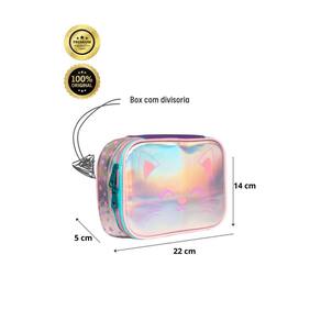 O estojo box gatinha é perfeito para as pequenas fashionistas que amam tudo que é brilhante e divertido. Com detalhes holográficos e glitter, ele é a companheira ideal para organizar todos os materiais escolares com muito estilo e praticidade.