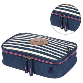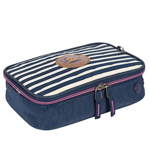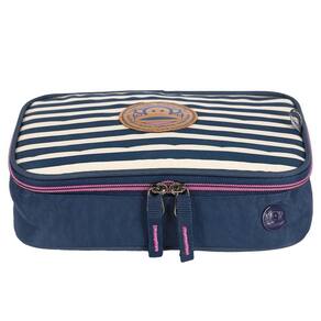 O Estojo Box Especial Paul Frank World - Navy combina um design náutico jovem e despojado, perfeito para o dia a dia e para a escola. Confeccionado em material resistente, possui divisória interna e bolso com zíper para organizar pequenos objetos com praticidade. O fechamento principal também é por zíper, garantindo segurança. As tiras de elástico internas são ideais para fixar lápis, canetas e outros itens, mantendo tudo no lugar de forma organizada. Produto SESTINI certificado pelo INMETRO Registro 003403/2018 - OCP - 0061 , assegurando qualidade e segurança.