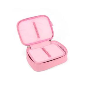 - Possui aba com elástico para posicionar lápis e canetas e espaço amplo para armazenar os objetos;
