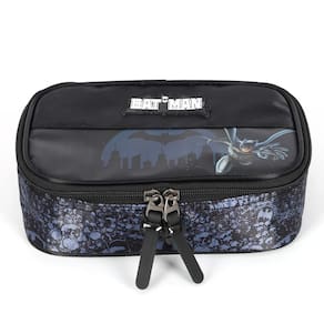 Estojo Escolar Box Batman Luxcel Preto   Estojo Escolar Box Batman Luxcel é prático e ideal para quem possui muitos lápis, canetas, borrachas e outros materiais. Ele facilita na organização do seu material no dia a dia, possui material resistente e estruturado.   Perfeito para o dia-a-dia e com espaço interno generoso de 36 elásticos, o estojo permite que os seus materiais de escrita sejam guardados e organizados facilmente, mantendo-se acessíveis e prontos para quando a inspiração bater   O Estojo Batman é conhecida pela qualidade e design de seus produtos, e este estojo não é exceção. Com sua capacidade e estilo, é uma escolha perfeita para o uso escolar ou juvenil.   Características do Estojo Escolar: - 1 Compartimento espaçoso com 36 elásticos para canetas e lapis - Fecho com zíper personalizado - Estampa Batman  - Modelo Unico e Exclusivo - Material: 70% Poliéster 30% PVC - Material Forro: 100% Poliéster   Dimensões do Estojo Escolar: - Altura: 5 cm - Largura: 21 cm - Profundidade: 15 cm   Conteúdo: - 1 Estojo