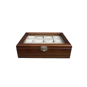 Prático e luxuoso, na linha madeira maciça encontrarmos um toque vintage, objeto decorativo onde são visíveis os veios naturais da madeira. Nossos estojos irão facilitar seu dia a dia com a organização e segurança que sua coleção precisa, além de proporcionar um ambiente mais sofisticado e elegante.Produzida com madeira natural de reflorestamento. Escolhida rigorosamente, tratada com fungicidas e anti-cupins. Envernizada externamente com verniz poliuretano industrial. Internamente as laterais e divisórias são revestidas com nylon aveludado. E as almofadas que acompanham o produto, normalmente são também em tecido aveludado. Na linha madeira maciça é possível observar os veios naturais da madeira. As dobradiças não são aparentes e possuem um limitador. A tampa possui visor com vidro transparente. Acompanha um fecho giratório de pressão em metal, ideal para colocar cadeado. Seus relógios sempre bem protegidos e acomodados confortavelmente, com toda segurança e facilidade no manuseio. Características das caixas para relógio:- Laqueado de Branco, Flocado Internamente de Preto;- Produto fabricado em madeira maciça de qualidade;- Não empena, não trinca, não racha;- Revestimento interno aveludado, inclusive as divisórias;- Fecho giratório de pressão em metal suporta cadeado ;- Tampa de vidro 2 milímetros;- Acompanha almofadas para todos os casulos;- Medidas aproximadas dos casulos larg x comp x alt : 7,5 x 7,5 x 7,5 cm. Relógios não acompanham o estojo - Imagens meramente ilustrativas.