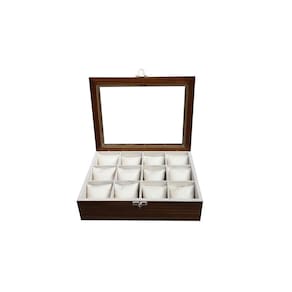 Prático e luxuoso, na linha madeira maciça encontrarmos um toque vintage, objeto decorativo onde são visíveis os veios naturais da madeira. Nossos estojos irão facilitar seu dia a dia com a organização e segurança que sua coleção precisa, além de proporcionar um ambiente mais sofisticado e elegante.Produzida com madeira natural de reflorestamento. Escolhida rigorosamente, tratada com fungicidas e anti-cupins. Envernizada externamente com verniz poliuretano industrial. Internamente as laterais e divisórias são revestidas com nylon aveludado. E as almofadas que acompanham o produto, normalmente são também em tecido aveludado. Na linha madeira maciça é possível observar os veios naturais da madeira. As dobradiças não são aparentes e possuem um limitador. A tampa possui visor com vidro transparente. Acompanha um fecho giratório de pressão em metal, ideal para colocar cadeado. Seus relógios sempre bem protegidos e acomodados confortavelmente, com toda segurança e facilidade no manuseio. Características das caixas para relógio:- Laqueado de Branco, Flocado Internamente de Preto;- Produto fabricado em madeira maciça de qualidade;- Não empena, não trinca, não racha;- Revestimento interno aveludado, inclusive as divisórias;- Fecho giratório de pressão em metal suporta cadeado ;- Tampa de vidro 2 milímetros;- Acompanha almofadas para todos os casulos;- Medidas aproximadas dos casulos larg x comp x alt : 7,5 x 7,5 x 7,5 cm. Relógios não acompanham o estojo - Imagens meramente ilustrativas.