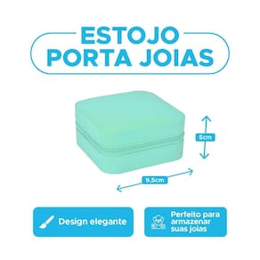 Estojo Caixinha Porta Joias Bijuterias Pequeno Compacto Amgd Cor: Verde Confira este Estojo para Joias Portátil, perfeito para levar suas joias com praticidade e estilo Com um design moderno e refinado, é compacto e funcional, ótimo para carregar na bolsa ou mala sem ocupar espaço. Feito com material de alta qualidade, tem uma textura suave e um acabamento excepcional. Cada compartimento interno é revestido de veludo para proteger suas joias delicadamente, evitando arranhões indesejados
