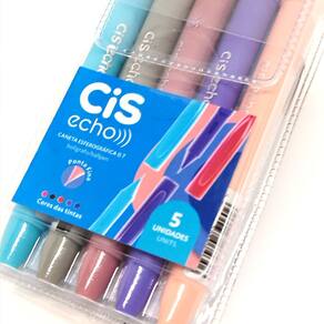 - O Estojo CiS ECHO traz 5 canetas esferográficas com escrita suave, moderna e perfeita para o dia a dia. - Cada caneta possui corpo em tons pastel e ponta agulha de 0.7mm, garantindo traços precisos e confortáveis para escrever, anotar ou desenhar. - Kit com 5 cores: azul, cinza, lilás, roxa e pêssego. - Ponta agulha 0.7mm: escrita fina, fluida e de ótima legibilidade. - Cores das tintas correspondentes ao corpo: fácil identificação e organização. - Estojo rígido reutilizável: ideal para levar na mochila ou deixar na mesa. - Design pastel moderno: combina estilo e funcionalidade. - CiS: marca reconhecida pela qualidade e durabilidade de seus materiais escolares e de escritório.