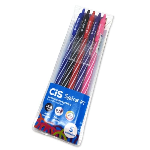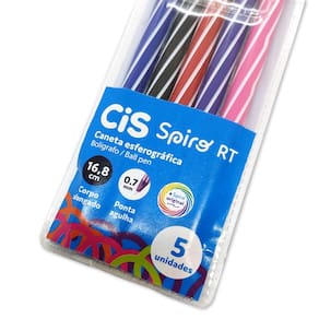 • Escrita suave e precisa – Ponta média 0.7mm que proporciona traço macio, definido e confortável para uso diário. • Sistema retrátil – Mecanismo de clique prático, sem tampa para perder, trazendo mais agilidade e praticidade no dia a dia. • 5 cores versáteis – Estojo com azul, preto, vermelho, roxo e rosa, ideais para organizar anotações e destacar conteúdos. • Visual da linha Spiro – Corpo com grafismo em espiral, característico da linha Spiro, trazendo um design moderno e colorido. • Tamanho confortável – Canetas com 16,5 cm de comprimento, oferecendo pegada firme e escrita confortável. • Para estudo e trabalho – Ideal para escola, escritório, planners, bullet journal e anotações do dia a dia.