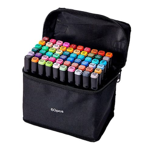 O kit inclui marcadores com pontas duplas, totalizando uma variedade de pontas diferentes. Esses marcadores são à base de álcool, livres de odor, tornando-os adequados até mesmo para uso infantil.