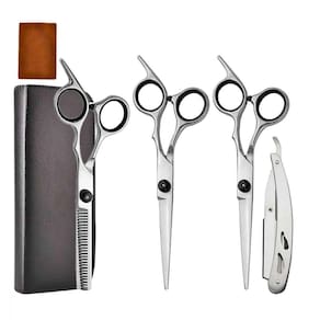 Código de barras: 7898802429173 Estojo com 6 Peças Tesouras e Navalha Profissionais Barbeiro Fio Laser PRATA Marca: Altomex Para realizar um bom corte de cabelo, você precisa ter um equipamento apropriado, pois ninguém gosta de usar equipamentos que te deixam na mão ou então que mastigue o cabelo na hora de fazer o corte, por isso você precisa de tesouras que o ajude a fazer o trabalho direito para que o seu cliente goste de seu trabalho e volte mais vezes. Você precisa ter no mínimo tesouras de corte de cabelo profissionais com excelentes qualidades, com acabamento mais leves assim como essa, pois só quem já passou por esses problemas de não ter equipamentos adequados sabe o que é ficar frustrado. Por isso elas fazem toda a diferença no acabamento de um bom corte. O Material é de alta qualidade, durável para uso mais longo. É também anti-estático sem ferir ou mastigar o cabelo, especialmente para aquelas mulheres com cabelo longo e danificados. Kit acompanha um estojo de pequeno porte, fácil de ser carregado para qualquer lugar, compacto e leve Kit perfeito para quem deseja trabalhar com produto 100% novo e de alta qualidade! Ferramentas ideias para cabeleireiros e barbeiros. 1 Tesoura Fio Laser 6.0 polegadas 1 Tesoura Fio Navalha 6.0 polegadas 1 Tesoura Desfiadeira 6.0 polegadas 1 Navalhete 1 Estojo de couro sintético. 1 Pano de limpeza Disponível na cor: -Prata Medidas da embalagem: L: 5,0 x C: 12,50 x A: 24,5cm Peso do Produto: 350g