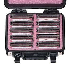 Case Club A capa de armazenamento de unidade interna média HDD e SSD comporta uma variedade de tipos de unidades de armazenamento interno em uma capa resistente, à prova d'água e hermética, perfeita para transporte e armazenamento. A espuma evita choques estáticos, não é abrasiva, absorve impactos e é extremamente duradoura. Esta capa foi projetada para superar toda a concorrência em versatilidade, longevidade, resistência e ser o próximo nível em organização, armazenamento e necessidades de transporte. A capa em si tem garantia vitalícia contra quebras e defeitos para que você saiba que seus itens estarão protegidos contra danos. Proteja seus dados, compre Case Club! - A capa serve para combos de até 10 HDDs de 3,5 polegadas, 40 unidades de 2,5 polegadas (HDD ou SSD) ou 180 SSDs M.2 - A espuma foi engenhosamente cortada para maximizar a capacidade de cada tipo de unidade! - Os HDDs de 3,5 polegadas, com 1,9 cm ou 2,5 cm de espessura, simplesmente se encaixam no bolso principal - As unidades de 6,3 cm (HDD ou SSD) utilizam um "rack" de espuma removível que comporta 4 unidades por bolso principal - Os SSDs M.2 utilizam 2 espumas inferiores "planas" (para suporte) e 1 espuma superior "ranhurada" para caber em 18 unidades por bolso principal. Os compartimentos M.2 servem apenas para SSDs com 22 mm de largura e não servem para dissipadores de calor - A espuma antiestática rosa é utilizada para evitar danos e corrupção de dados que podem ocorrer devido ao acúmulo natural de eletricidade estática. Confie apenas na espuma antiestática rosa quando se trata de armazenar eletrônicos delicados! A espuma tem célula fechada para que possa ser secada se molhada e não é abrasiva, absorve impactos e não se deteriorará com o tempo - As dimensões externas da capa são 27 cm C x 24 cm L x 17 cm A. A capa é 100% à prova d'água, hermética e à prova de poeira. O revestimento de plástico rígido moldado por injeção protege contra choques, quedas, impactos e elementos. Orifícios de cadeado para maior segurança. Válvula de alívio de pressão embutida para que a capa possa ser aberta em qualquer altitude. Perfeito para bagagem despachada ou bagagem de mão.